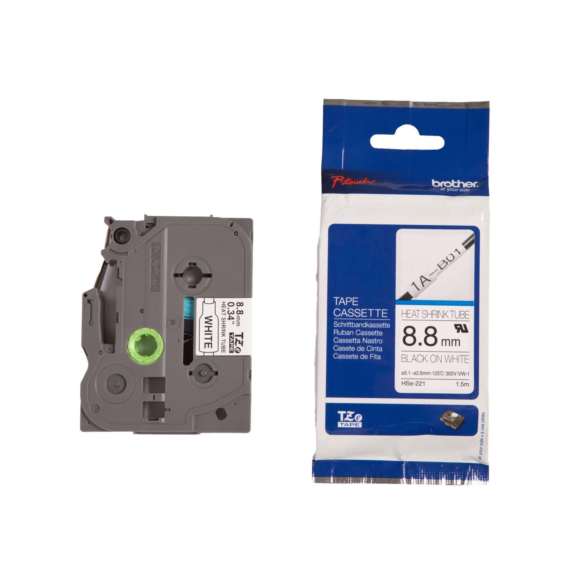 Der Brother Schrumpfschlauch HSE-221 hat eine Breite von 8,8 mm und eine Länge von 150 cm. Kabel mit einem Durchmesser von 2,6 bis 5,1 mm Durchmesser können so markiert werden. Der Schrumpfschlauch HSE-221 ist kompatibel mit den Geräten PT-P700, PT-P750W, PT-H300, PT-H500, PT-E300VP, PT-E500VP, PT-E550WVP, PT-H300LI und PT-H500LI.