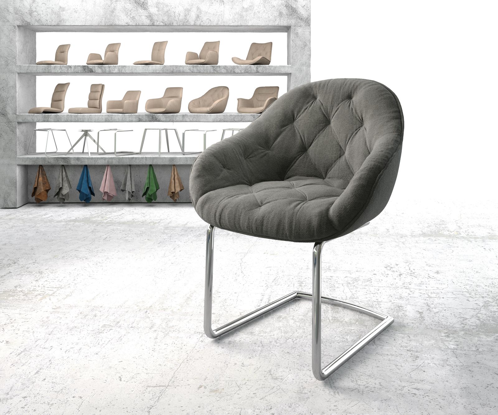 Details: Armlehnstuhl Gaio-Flex Anthrazit Struktur Freischwinger rund verchromt