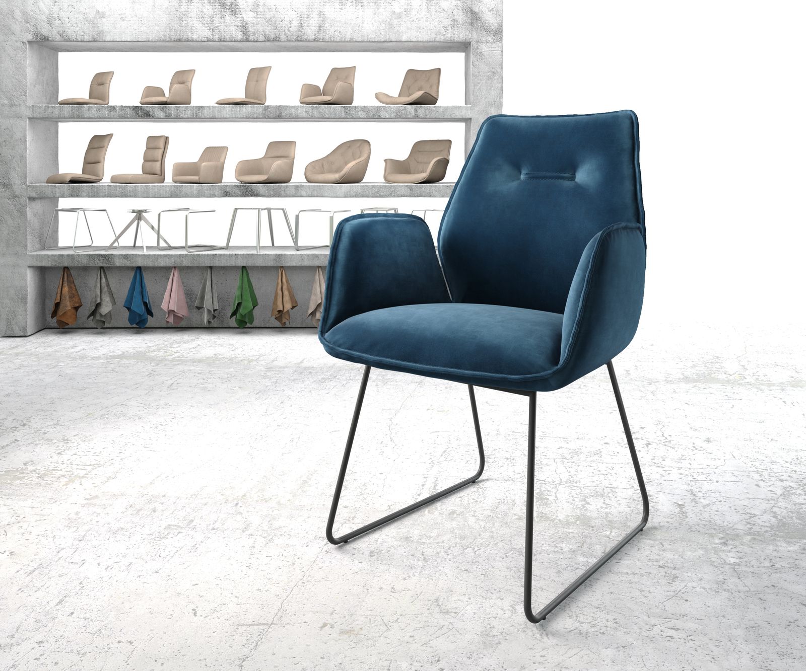 Details: Armlehnstuhl Zoa-Flex Blau Samt Kufengestell schwarz