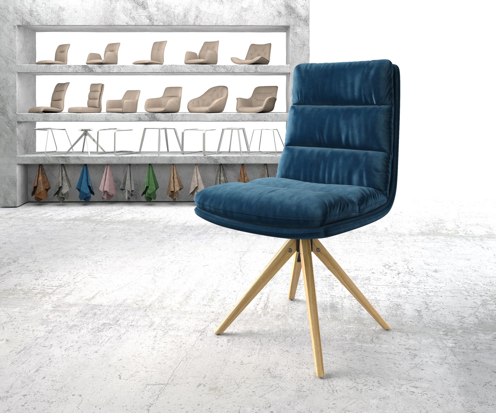 Drehstuhl Abelia-Flex Blau Samt Holzgestell kantig
