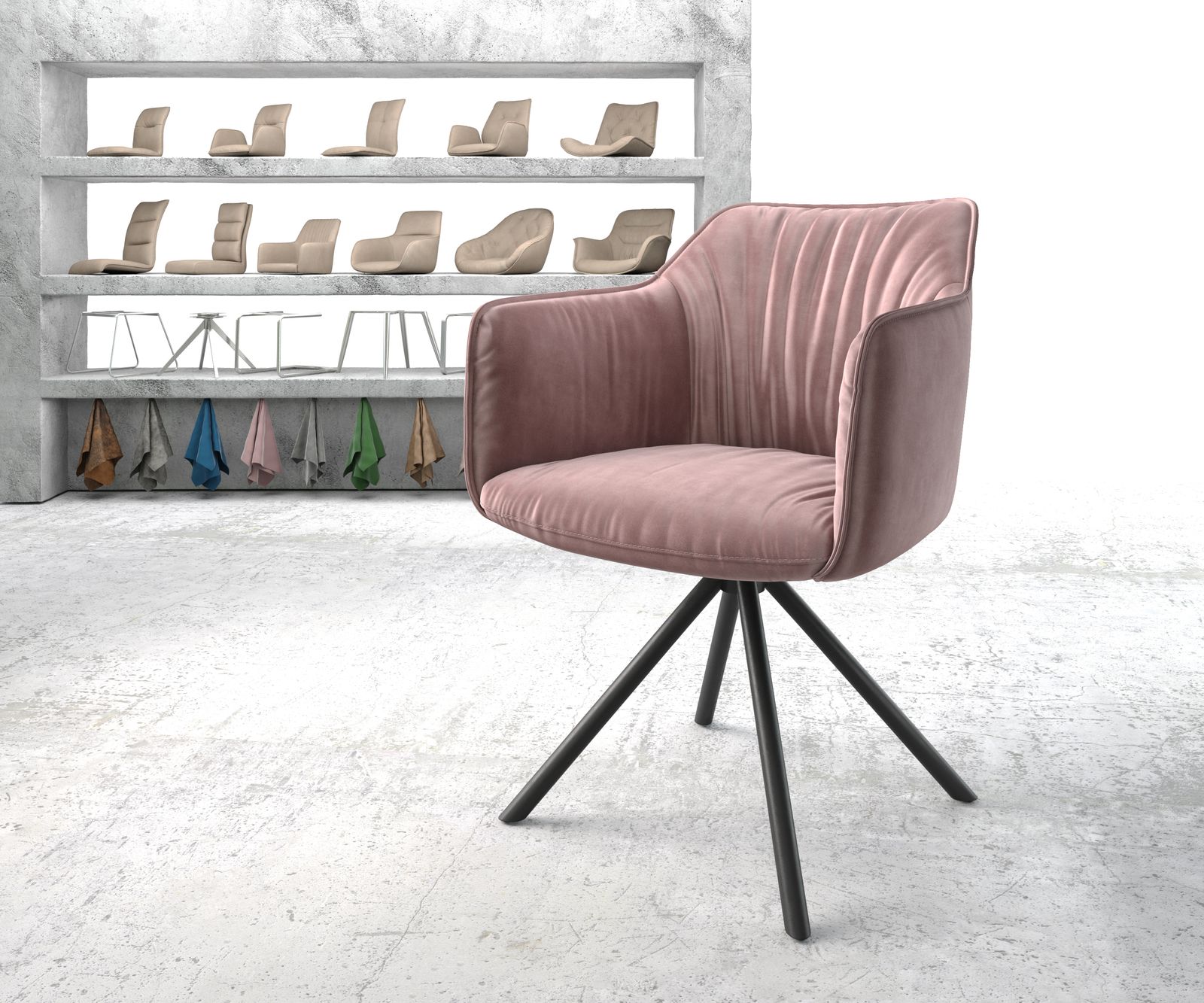 Drehstuhl Elda-Flex mit Armlehnen Samt Rosé Kreuzgestell rund schwarz
