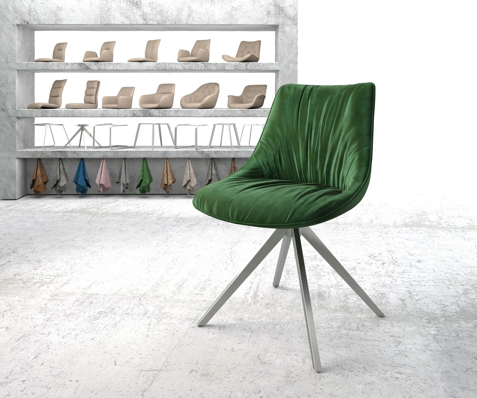 Drehstuhl Elda-Flex Samt Grün Kreuzgestell kantig Edelstahl