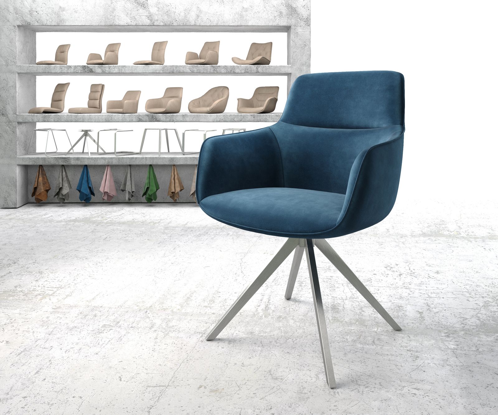 Drehstuhl Pejo-Flex Blau Samt Kreuzgestell kantig Edelstahl