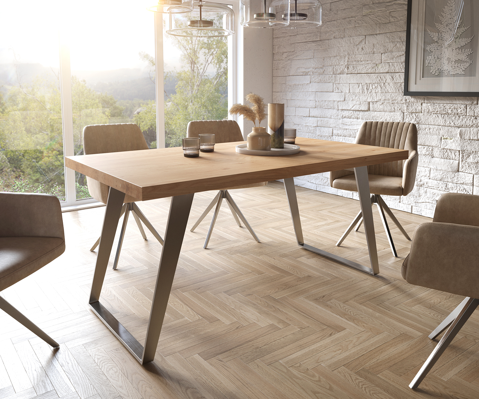 Esstisch Edge 160×90 Eiche Natur Edelstahl Schräg