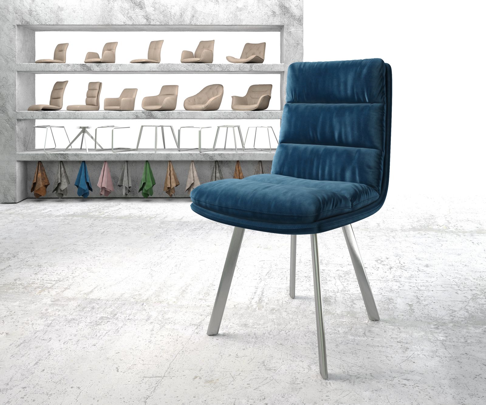 Esszimmerstuhl Abelia-Flex Samt Blau 4-Fuß oval Edelstahl