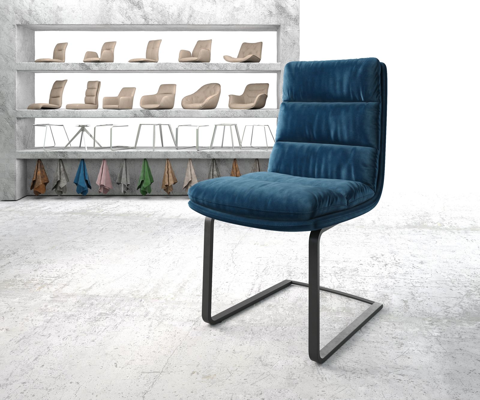 Esszimmerstuhl Abelia-Flex Samt Blau Freischwinger flach schwarz