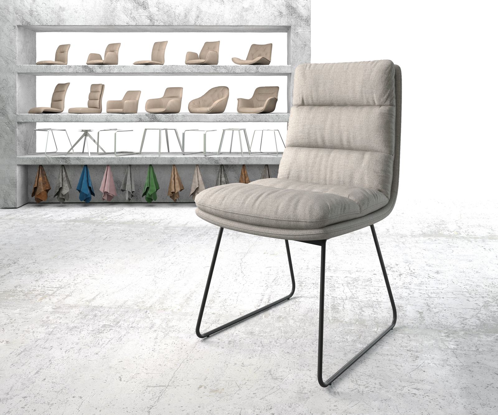 Details: Esszimmerstuhl Abelia-Flex Stripes Hellgrau Kufengestell schwarz