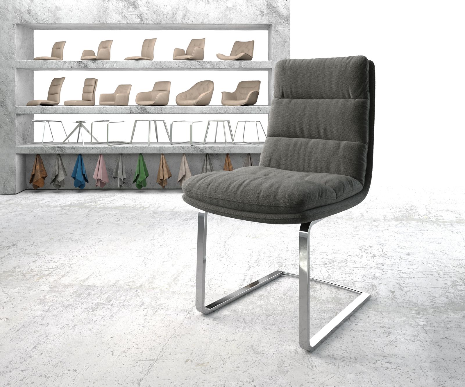 Details: Esszimmerstuhl Abelia-Flex Strukturstoff Anthrazit Freischwinger flach verchromt