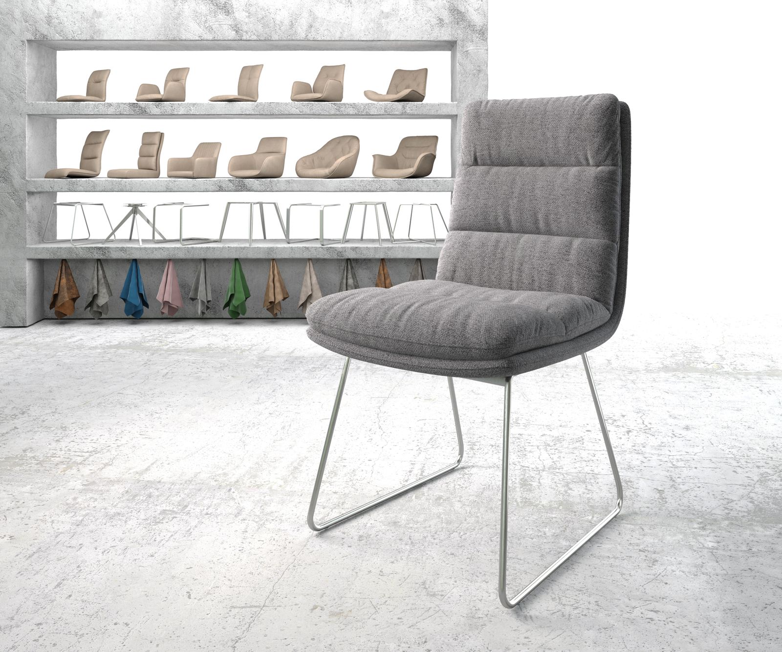 Esszimmerstuhl Abelia-Flex Strukturstoff Hellgrau Kufengestell Edelstahl