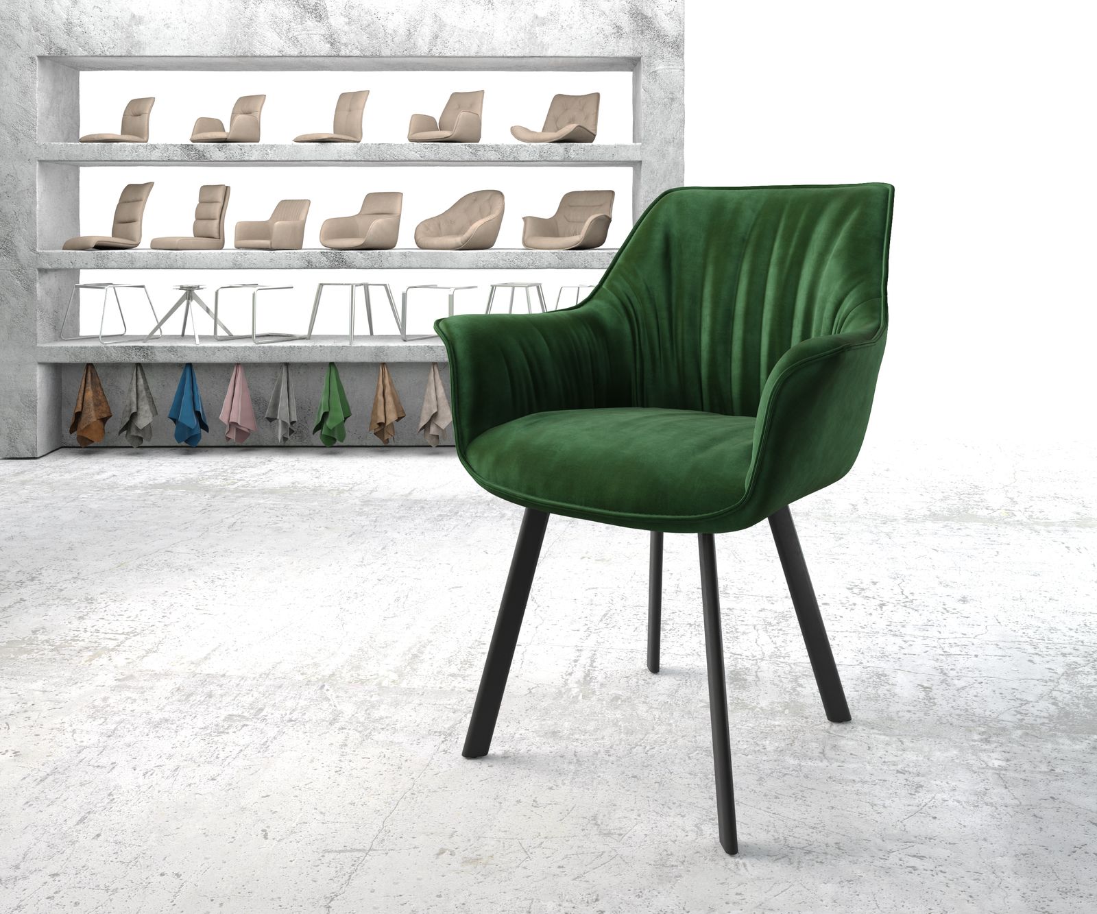 Esszimmerstuhl Keila-Flex mit Armlehnen Samt Grün 4-Fuß oval schwarz