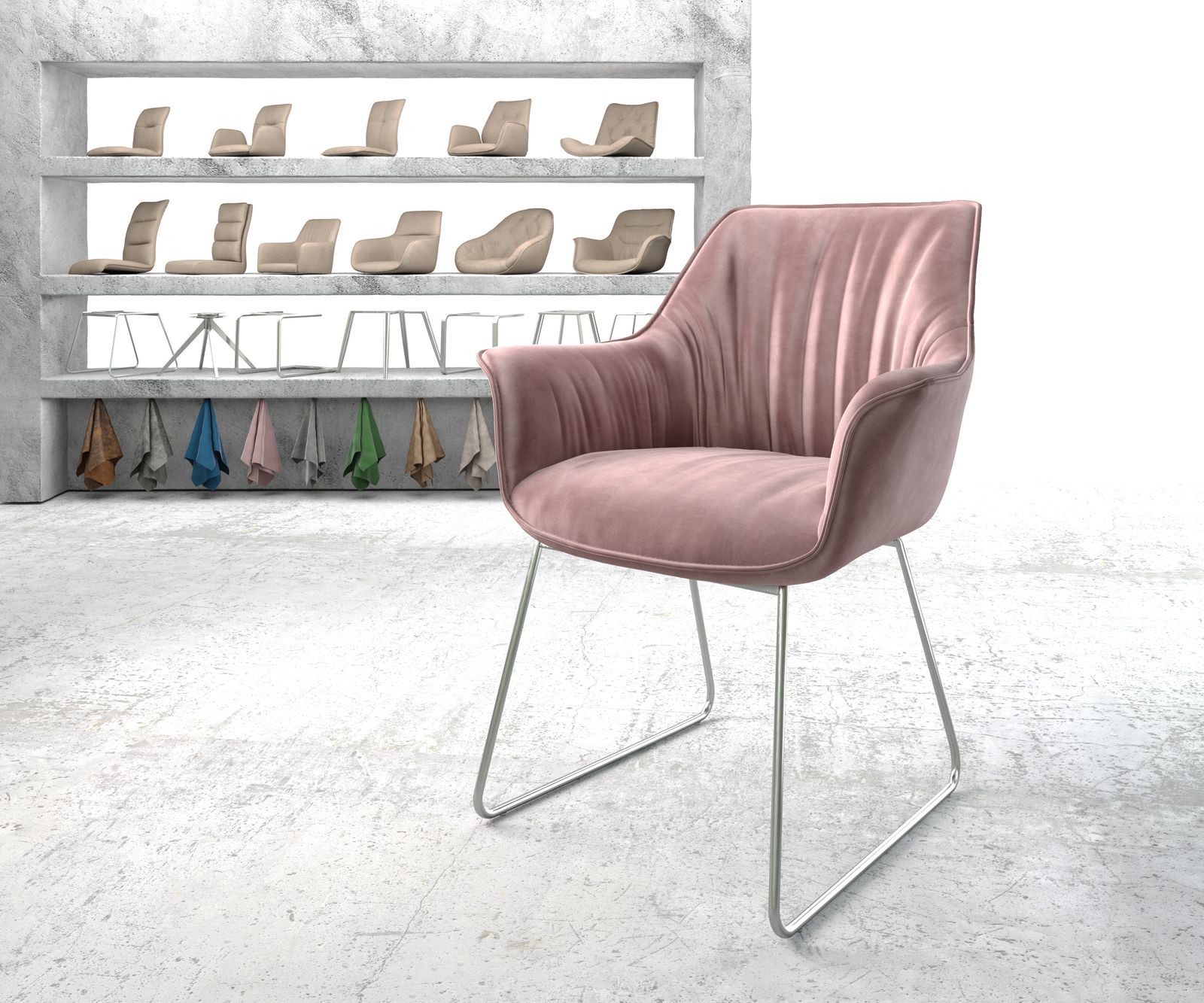 Esszimmerstuhl Keila-Flex mit Armlehnen Samt Rosé Kufengestell Edelstahl