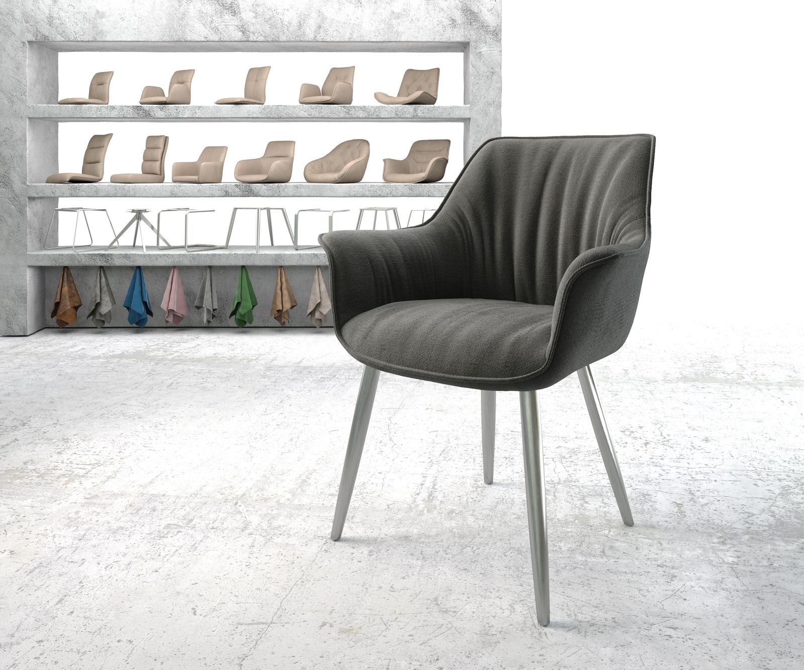 Details: Esszimmerstuhl Keila-Flex mit Armlehnen Strukturstoff Anthrazit 4-Fuß konisch Edelstahl