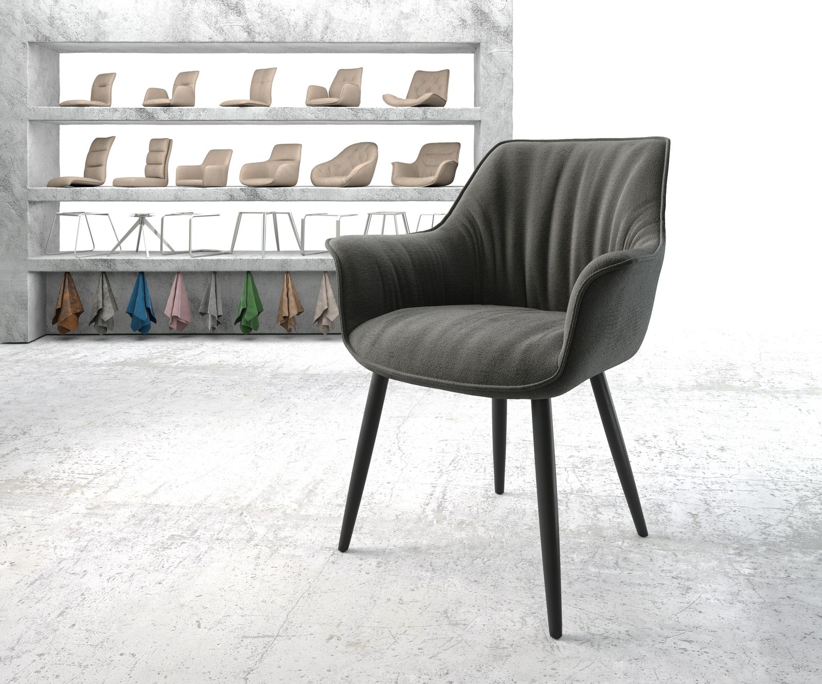 Esszimmerstuhl Keila-Flex mit Armlehnen Strukturstoff Anthrazit 4-Fuß konisch schwarz