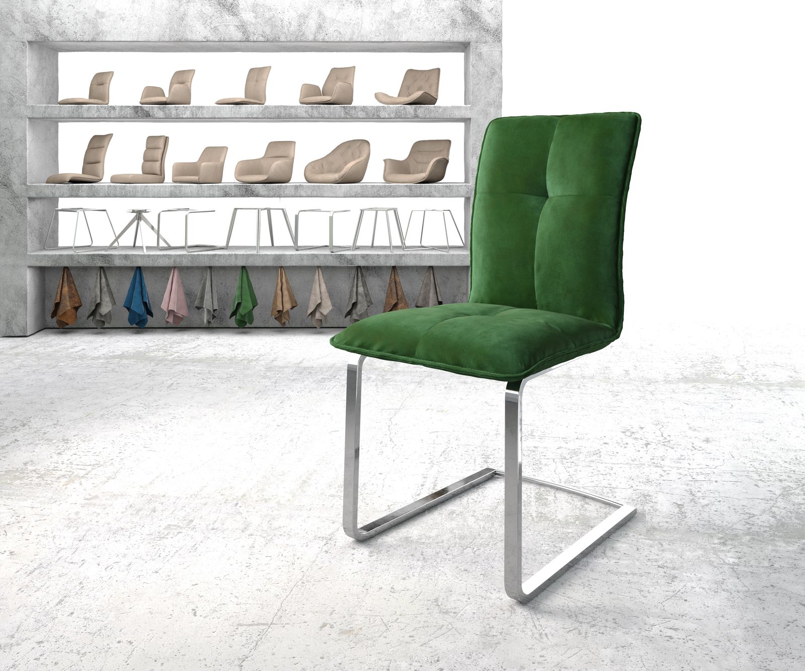 Details: Esszimmerstuhl Maddy-Flex Grün Samt Freischwinger flach verchromt