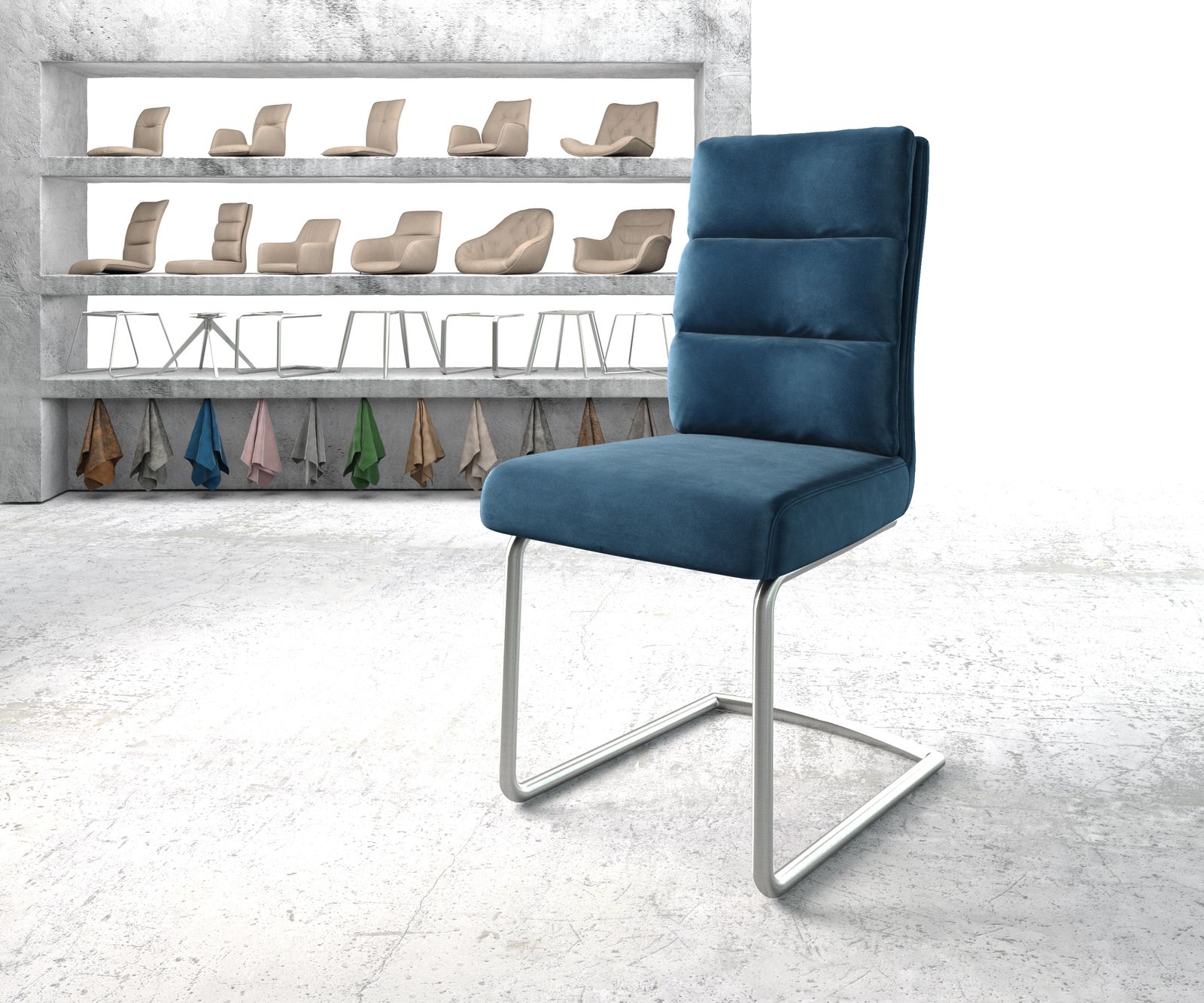 Details: Esszimmerstuhl Pela-Flex Blau Samt Freischwinger rund Edelstahl