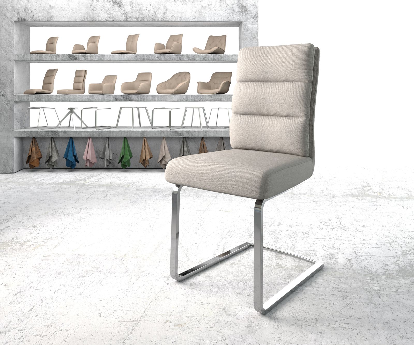 Details: Esszimmerstuhl Pela-Flex Hellgrau Stripes Freischwinger flach verchromt