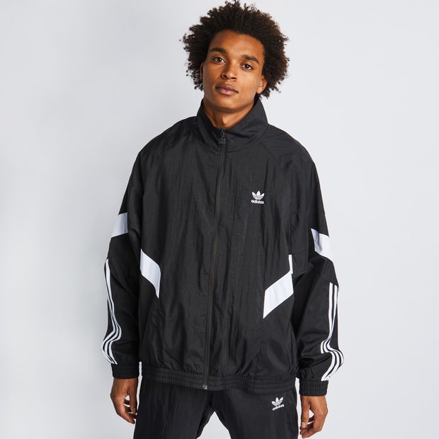 A full salute to one of our most iconic silhouettes, this adidas track jacket is simultaneously rooted deeply in our heritage while evolving the look into new terrain. The reference to the past is clear with the diagonal cut lines played out on the smooth nylon build. Loose fit. Full zip with stand-up collar. Shell: 100% recycled nylon plain weave. Lining: 100% recycled polyester mesh. Front zip pockets. Ribbed cuffs and hem.