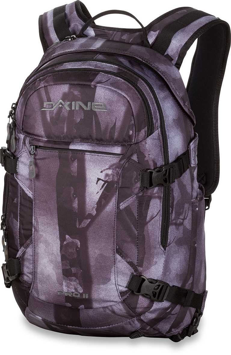 Der Dakine Pro2 ist der Superstar unter den Tourenrucksäcken von Dakine. Die funktionelle Ausstattung wurde speziell den Bedürfnissen des Backcountry angepasst. Die ergonomisch angeordneten Schulter-, Brust- und Hüftgurte sind speziell gepolstert. Der PRO II verfügt über ein großes Hauptfach das auf der Rückseite zu öffnen ist. Ein extra RV-Fach für die Lawinenausrüstung mit Steckfächern und Gurten sowie ein Fleece-gefüttertes Brillenfach befinden sich auf der Vorderseite. Die Skier können diagonal, das Snowboard vertikal am Rucksack befestigt werden. Für den Eispickel oder eine Eis Axt ist seitlich eine extra Halterung angebracht. Mit einem zusaezlichen RV-Fach an der Deckelklappe inklusive verstaubarere Helmhalterung. Der Snowboardrucksack ist kompatibel für eine Trinkblase. Damit sich im Trinkschlauch kein Eis bildet, ist die Führung isoliert. Der PRO 2 von Dakine, ein leichter und funktioneller Skitourenrucksack ohne wenn und aber!