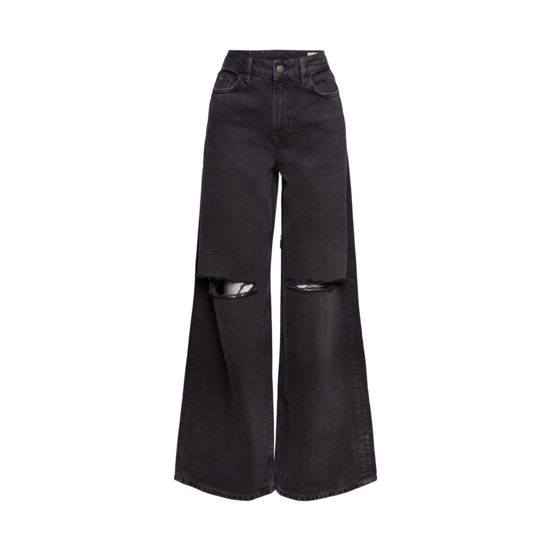 Diese High Waist Denim mit weitem Bein und Löcher auf Kniehöhe liegt diese Saison voll im Trend.