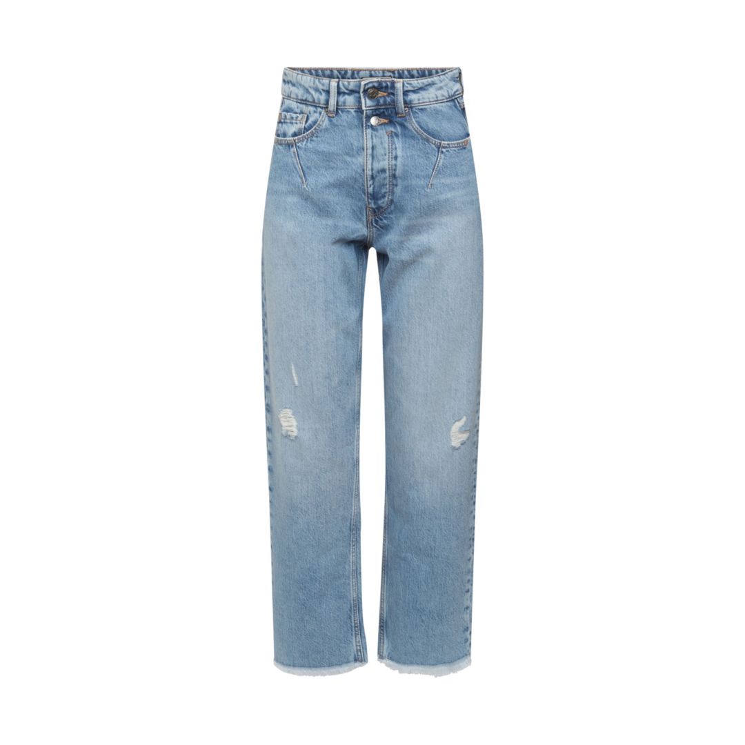 Details: ESPRIT High-Rise-Jeans mit Destroyed-Effekten in Dad Fit