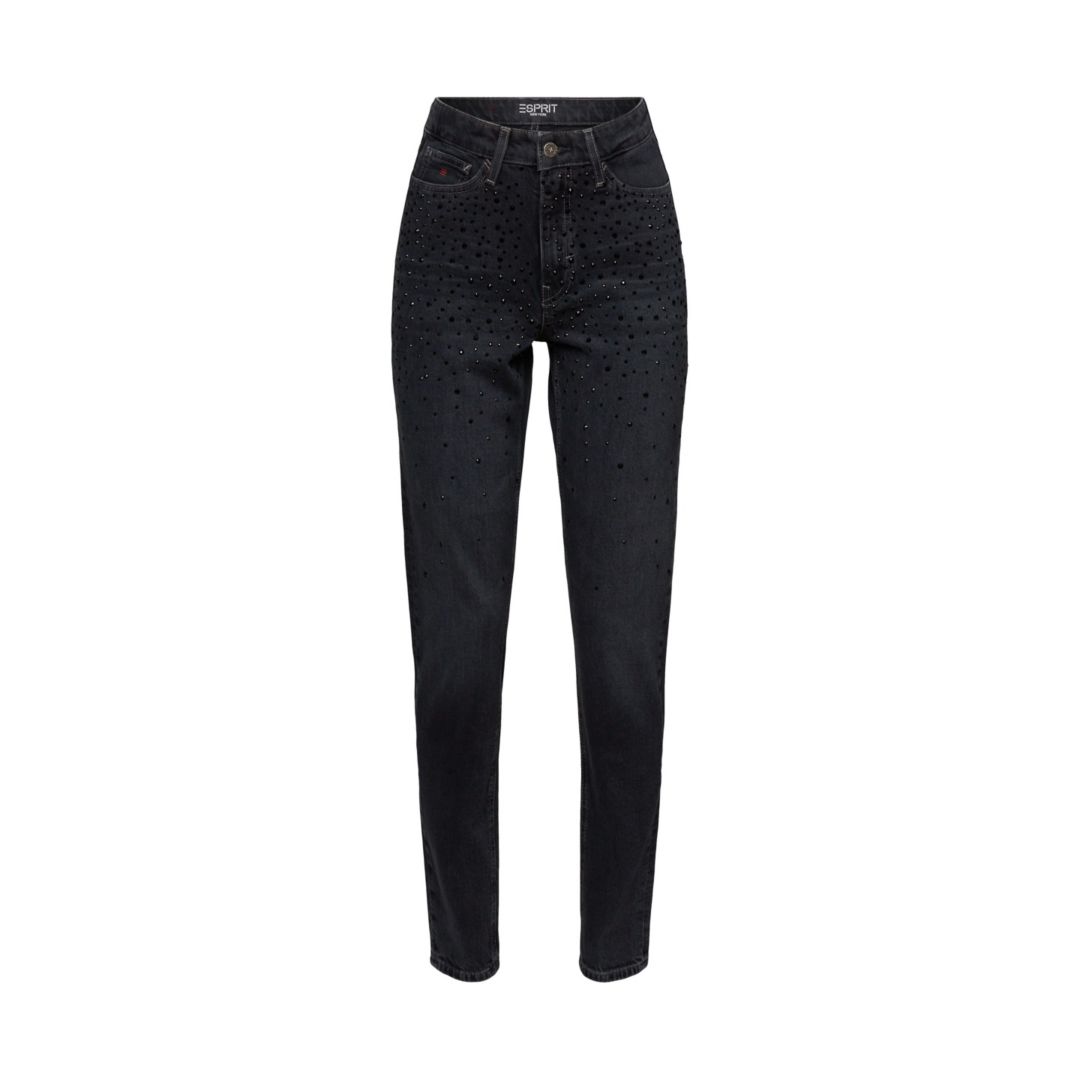 Die Retro-Jeans ist aus Baumwollstretch gefertigt, sitzt charmant hoch in der Taille und wird auf der Vorderseite von funkelnden Ziersteinen geziert.