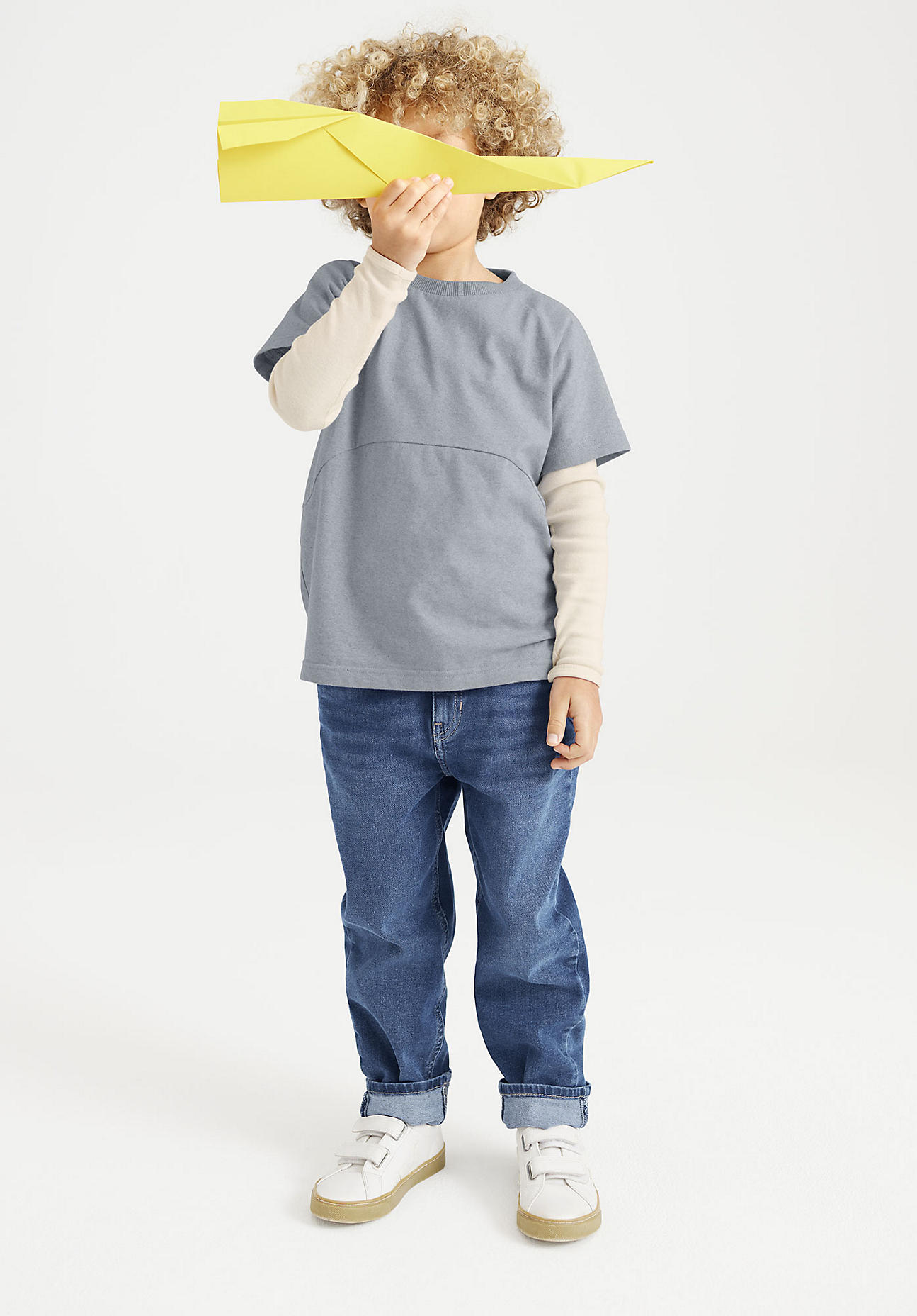 Eine Portion Nachhaltigkeit bitte: relaxter 5-Pocket-Fit für Jungs und Mädels. Der leicht vertiefte Schritt, die mittlere Bundhöhe und ein kleiner Elasthan-Anteil machen die Jeans zum bequemen Begleiter für jeden Tag. Mit hellerer Waschung und stiltypischen Zier-Nieten. Bei uns inklusive: das innen liegende Gummiband zum Anpassen der Bundweite. Die hohe Saugkraft, der angenehme Temperaturausgleich und die gute Waschbarkeit machen die Beliebtheit unserer Bio-Baumwolle aus. Doch es geht noch nachhaltiger: Diese Jeans hat einen Anteil an recycelter Baumwolle , unvermeidbare Spinnabfälle aus hausinterner Produktion werden neu versponnen und verwendet. Stichwort: BetteRecycling.