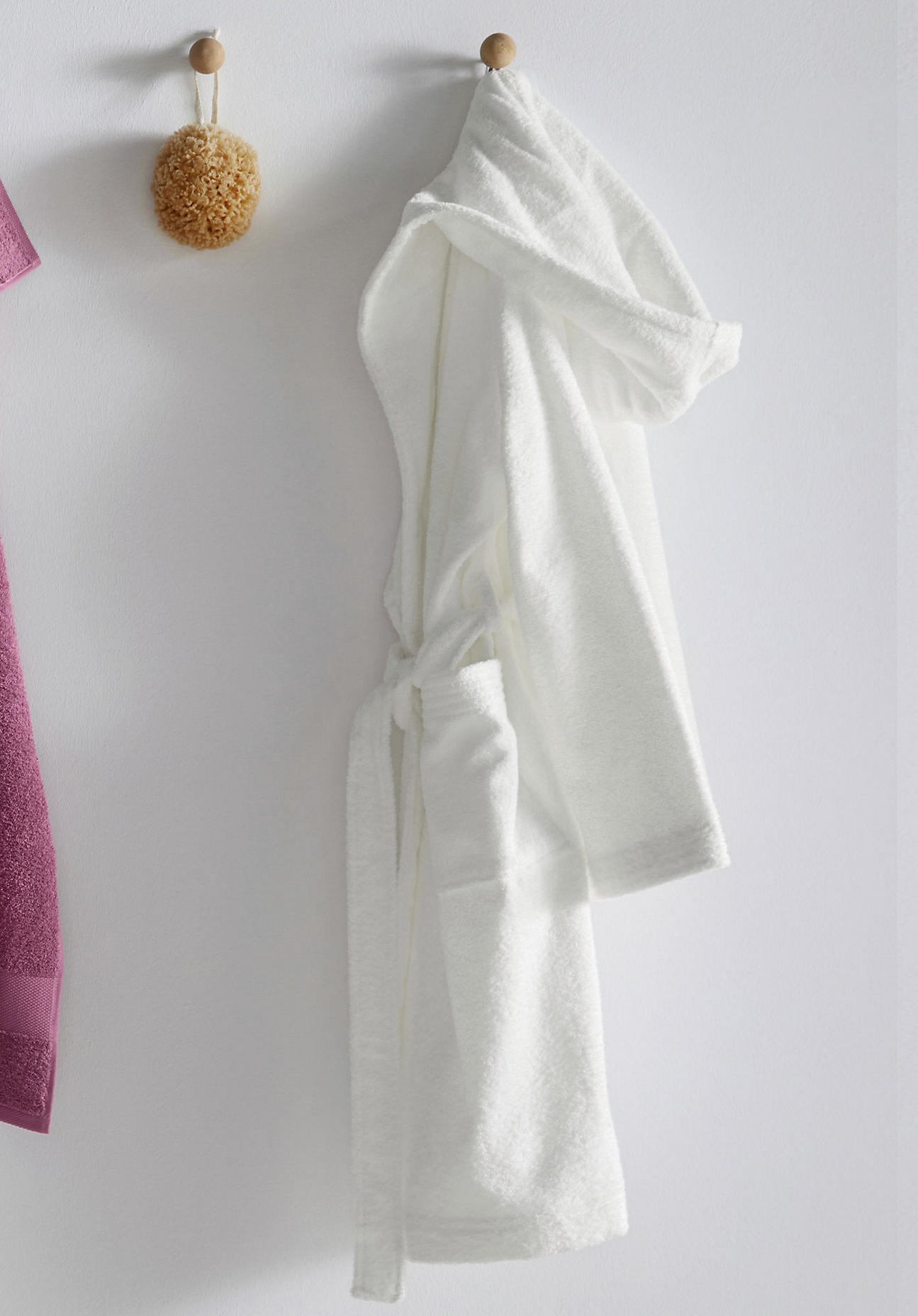 hessnatur Kurzer Bademantel aus Bio-Baumwolle – weiß – Größe M