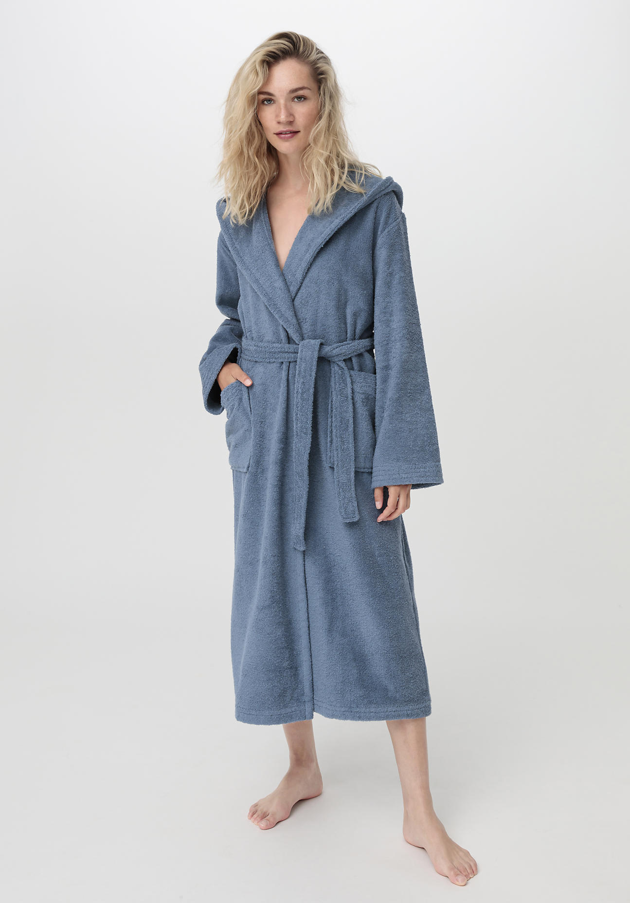hessnatur langer Bademantel aus Bio-Baumwolle – blau – Größe XL