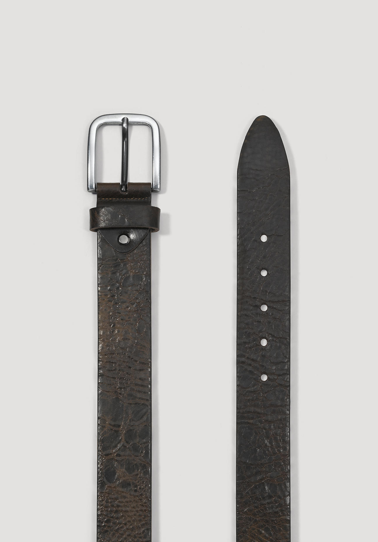 Kerniger Ledergürtel für den Herren aus hochwertigem Vollrindleder mit einer silbermatten, formschönen Schließe. Besonders markant: der Antiklook des Leders mit seiner lebendigen Oberflächenstruktur – biegt man es, wird es an der Stelle heller, lässt man es los, nimmt das Leder langsam wieder die ursprüngliche Farbe an. Hochwertig: Die rund gebügelten Kanten wurden innovativ mit einer speziellen Olivenöl-Tinktur behandelt und versiegelt. Qualität, die lange Freude macht – auch weil sie kompromisslos bio ist. Die Gürtelmaße verstehen sich als Länge in Zentimetern von der mittleren Lochung bis zur Schnalle. Der Umwelt zuliebe wurde das stabile Leder aufwendig rein mit Hitze und Druck mechanisch bearbeitet – ohne umweltbelastende Chromsalze und Schwermetalle. Durch den Einsatz natürlicher Fette und Wachse bleibt es geschmeidig und atmungsaktiv – so bewahrt jeder Gürtel seinen natürlichen Charakter.