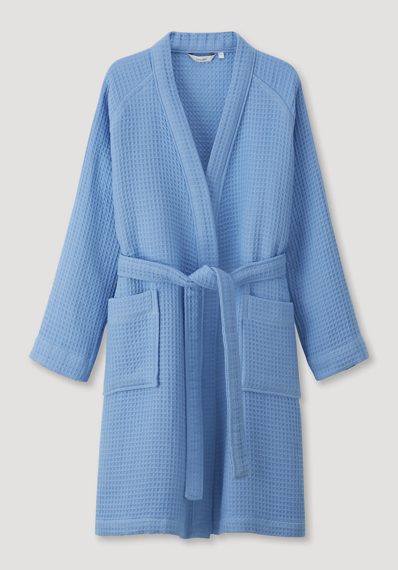 hessnatur Waffelpiqué-Bademantel aus Bio-Baumwolle – blau – Größe XS