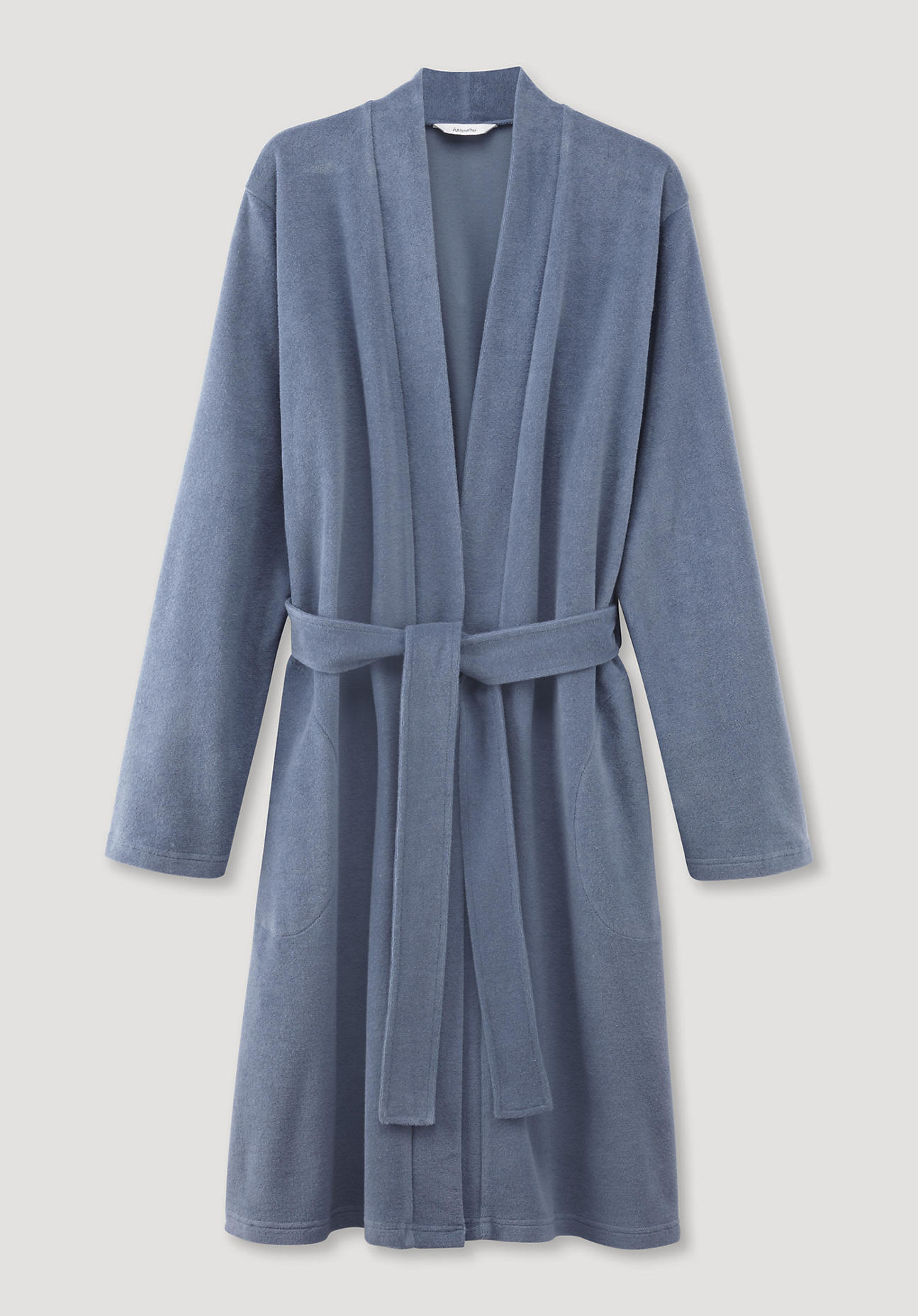 hessnatur Wellness-Bademantel aus Bio-Frottee-Jersey – blau – Größe M