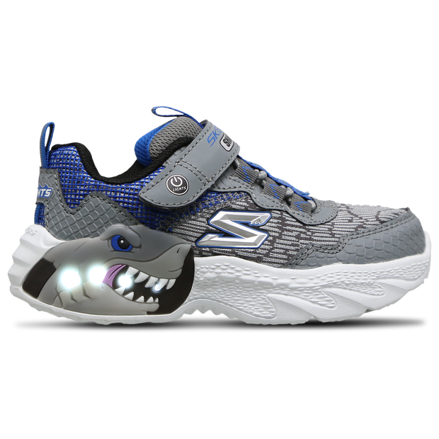 Leuchtender, sportlicher Glanz Mit den Skechers S-Lights Creature-Lights kreierst du einen wilden, launigen Style. Diese ungewöhnlichen Sport-Sneaker mit Kreaturen-Motiv bringen deinen sportlichen Style zum Glänzen. Das Obermaterial kombiniert atmungsaktives Mesh und strapazierfähiges Synthetik-Material für unvergleichlichen Tragekomfort. Die Stretch-Schnürung in Kombination mit einem verstellbaren Ristriemen sorgt für die perfekte Passform. Die gepolsterte und stoßdämpfende leuchtende Zwischensohle ist mit Haifisch-Details versehen, um auf Schritt und Tritt für ein federndes und wildes Laufgefühl zu sorgen. Produktdetails für Skechers S-Lights Creature-Lights: * Obermaterial: Mesh/Synthetik * Stretch-Schnürsenkel * Verstellbarer Riemen * Ein-/Aus-Lichttaste * Skechers-Logo-Detail * Gepolsterte Komfort-Einlegesohle * Leuchtende Zwischensohle mit Käfer- oder Haifischmotiv * Flexible Traktionslaufsohle