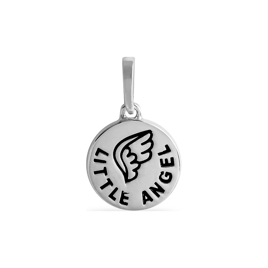 Kleine Engel gibt es überall – hier verbirgt sich einer im Schmuckanhänger. Auf dem runden Anhänger aus Silber prangt eine schwarze Gravur mit den Worten „Little Angel“. In der Mitte ist außerdem ein Flügel eingezeichnet. Mit dieser Markierung wird das Schmuckstück zum beschützenden Begleiter in allen Lebenslagen. Das hübsche Design von FAVS präsentiert sich frisch und zeitlos: ein kleines, aber starkes Kombitalent.