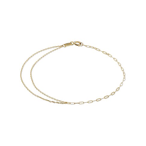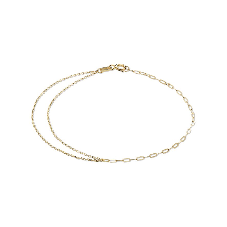 Dieses CHRIST Armband aus poliertem 375er Gelbgold setzt den aktuellen Layeringtrend perfekt um: Zwei feingliedrige Kettchen werden hier mit einer etwas gröberen in Paperlink-Optik kombiniert. Ein Armband, mit dem Sie Ihr Handgelenk im Alltag ebenso zum Strahlen bringen wie zu besonderen Anlässen! Der Karabinerverschluss sorgt dabei für perfekten Halt, während eine Zwischenöse die perfekte Verstellbarkeit in der Länge garantiert.