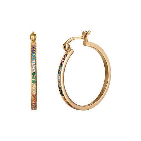 Elegante Creolen von Caï aus 925 Silber in der Farbe Gold, ideal für anspruchsvolle Frauen. Glitzerndes Highlight sind die 24 Zirkonia, die das Licht einfangen und die Blicke auf sich ziehen. Farbenfroh und fröhlich: Die Steine im Facettenschliff (rund) bringen mit den Farben des Regenbogens gute Laune in all deine Looks und unterstreichen so deine Persönlichkeit. Die Oberfläche der Ohrringe ist vergoldet und poliert – ein edles Finish für strahlende Schönheit. Mit den mittelgroßen Creolen (Durchmesser: 20 Millimeter) liegst du immer goldrichtig: Sie verleihen deinem Look eine unübersehbare Eleganz, ohne dabei überladen zu wirken und verbinden klassischen Stil mit auffälliger Präsenz. Ein weiterer Pluspunkt ist der praktische Klappringverschluss, der ein einfaches und müheloses Anlegen ermöglicht und für hohen Tragekomfort sorgt.
