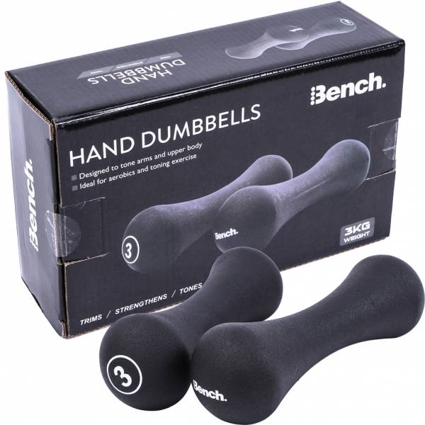 Marke Bench Material Kern Eisen rutschfestfeste Beschichtung Markenlogo auf der Seite des Gewichts Gewicht 2x 3 kg Hantelgröße (ca. Angaben) 23 x 8 cm robuster Mantel aus Gummi dämpft und vermeidet Kratzer Form Knochenhantel ergonomische und praktische Griffform für Übungen zur Stärkung der Arme und des Oberkörpers ideal für Aerobic und Muskelaufbautraining bei einer Vielfalt von Fitnessübungen verwendbar NEU im Karton & OVP