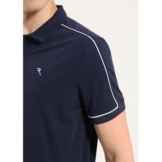 Herren-Poloshirt gefertigt aus dreidimensionalem Gewebe, ideal für die gesamte Saison. Es bietet eine ausgezeichnete Atmungsaktivität und anhaltende Frische dank der Struktur des Garns aus Polyamid in Verbindung mit der speziellen Dry-Matic-Behandlung für ein schnelles Trocknen. Das Modell zeichnet sich durch sein raffiniertes Design aus, dank der kontrastierenden Einfassung und passenden Stickerei. Ärmelabschluss aus weichem Ton-in-Ton-Rippstrick.
