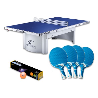 Cornilleau Tischtennisplatte PRO 510 Outdoor-Set Das Set für Schulen und Vereine – Die Tischtennisplatte PRO 510 Outdoor von Cornilleau ermöglicht Ihnen, dank seiner Wetterfestigkeit einen dauerhaften Einsatz im Außenbereich. Ob für Schulen, Vereine, Campingplätze und Co. Der Tischtennistisch ist speziell für hohe Beanspruchungen entwickelt. Die 7 mm starke Platte aus Melamin verfügt über eine Mattop-Beschichtung. Diese reflektiert 10x weniger und macht das Spiel bei strahlendem Sonnenschein zum absoluten Vergnügen. Durch das feste Untergestell und ohne Klappmechanismus bietet Ihnen der robuste TT-Tisch eine optimale Standfestigkeit. Die Cornilleau Platte verfügt über ein bereits fest montiertes Stahlnetz. Tischtennisschläger und -bälle für den Outdoor-Bereich machen das Set komplett. Die Lieferung der Platte erfolgt demontiert. – Maße und Gewicht – Internationales Turniermaß LxBxH 274×152,5×76 cm – Gewicht 77 kg – Produktdetails – 7 mm starke Melaminplatte wetterfest und widerstandsfähig – Mit Mattop-Beschichtung – 60 mm breitem Profilrahmen – Gebogenes Stahlgestell 56200×45 mm – Bleibende weiße Markierungslinien – Mit Fixierungslöchern zur festen Montage am Boden – Inkl. fest montiertem Stahlnetz – 10 Jahre Garantie auf die Spielfläche
