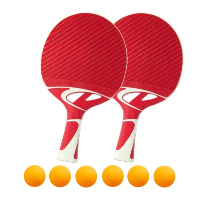 Cornilleau Tischtennisschläger-Set Tacteo 50 Bei jeder Wetterlage bestens vorbereitet – Das Cornilleau Tischtennisschläger-Set Tacteo 50 besteht aus 2 wasserfesten Schlägern und 6 Tischtennisbällen. Die Schläger verfügen über einen speziellen Gummibelag, der fest mit der Schlägerplatte verbunden ist und sich auch bei hoher Belastung nicht ablöst. Dadurch sind die Schläger besonders robust und widerstandsfähig und bestens für den Einsatz in Schulen, Vereinen und Freizeiteinrichtungen geeignet. Die im Lieferumfang enthaltenen Bälle haben einen Durchmesser von 40 mm und sind bestens für das Training von Topspin, Unterschnitt, Konterschlag oder Flip geeignet. – Produktdetails zu Cornilleau Tischtennisschläger Tacteo 50 Outdoor – Hochwertige Polymer Beschichtung – Konkave Griff-Form für optimalen Halt – Produktdetails zu Tischtennisbällen – 40 mm – 6 Bälle in einer Faltschachtel