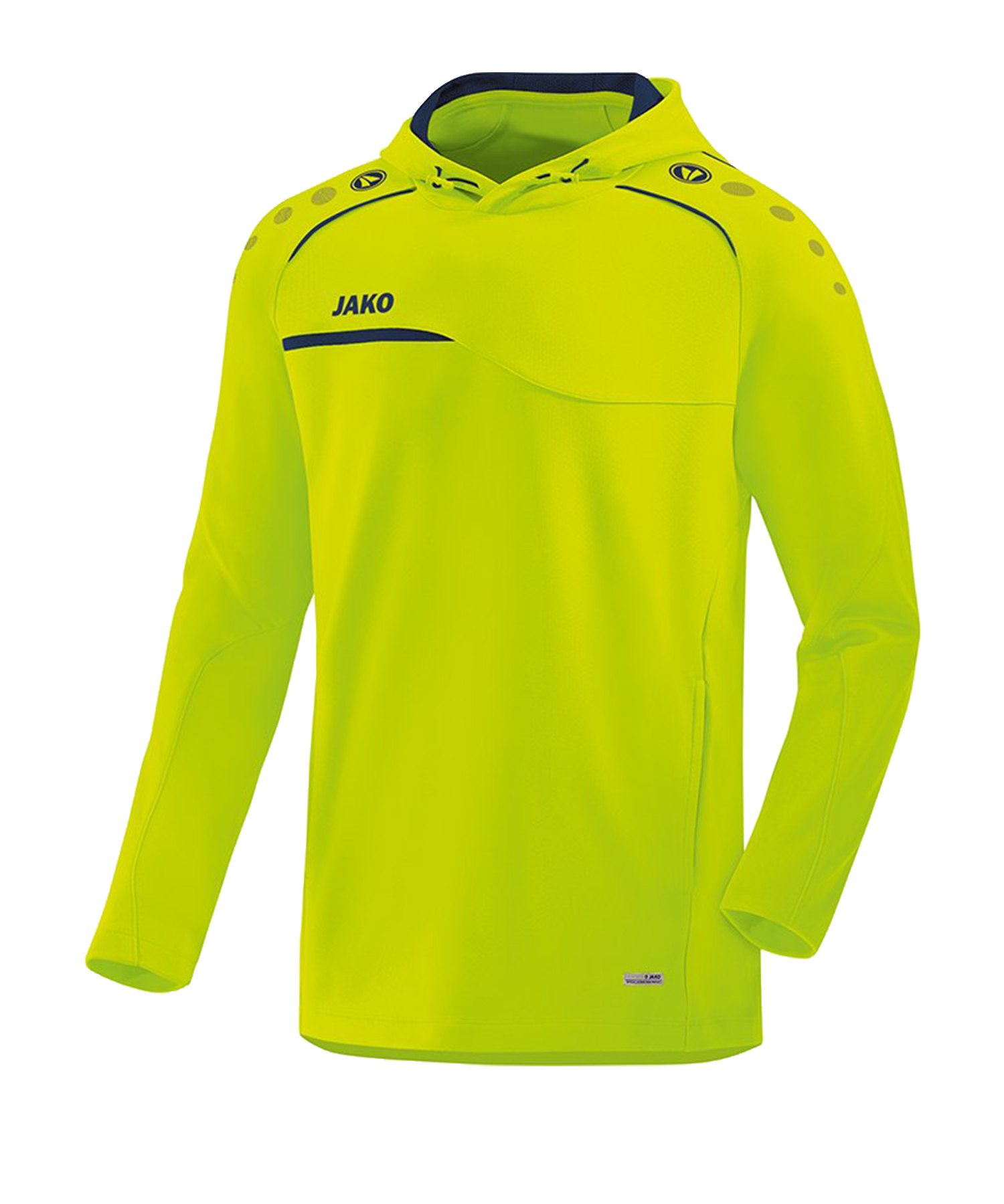 Der schweißableitende Prestige-Hoody in Gelb lässt dich und dein Team hervorragend auftreten. Die Marke Jako bringt mit dem Kinder-Hoody ein wunderbares Produkt auf den Markt. Dieser schweißableitende Hoody mit angenehmem Tragegefühl überzeugt auf ganzer Linie. Ein toller Top-Hoody vom 1989 gegründeten und international aufstrebenden Sportartikelanbieter. Optische Unterstützung bekommt dieser langärmlige Hoody durch einen normallangen Schnitt. Kleinere Dinge lassen sich bequem in den seitlichen Taschen unterbringen. Über den Kopf verlieren wir die meiste Körperwärme – dank der Kapuze mit Kordelzug wird euch auch bei schlechtem Wetter und Wind nicht kalt. Für coole Kids mit Spaß an Sport und Bewegung ist dieser Hoody genau das Richtige.