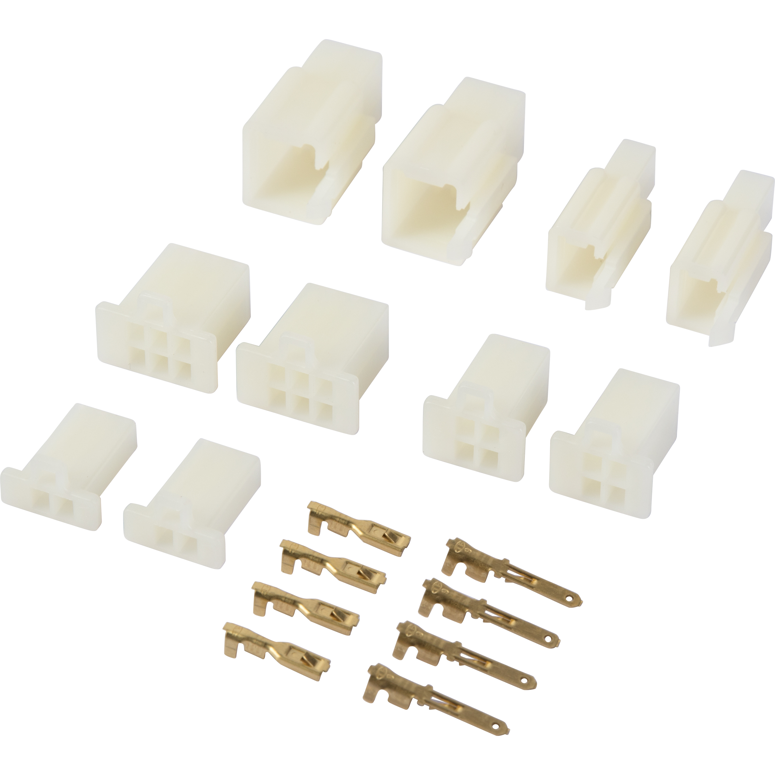 Hi-Q Tools Elektrikstecker-Set eckig 108-teilig Robuste Steckverbindungen um Kabel miteinander zu verbinden. Details: Stecker wie sie oft auch schon im Originalen verwendet werden Bestehend aus Kabelschuhen (male/female) und eckigen Steckern in die die nach Bedarf engesetzt werden können Lieferumfang Steckverbindungen (male/female): 2x 2-fach, 4x 4-fach und 4x 6-fach Geeignet bis 13 Ampere Preis pro Set mit 108 Teilen
