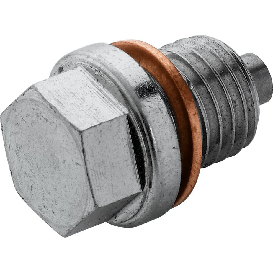 Hi-Q Tools Magnet Ölablassschraube Fixiert Metallspäne welche sich durch natürlichen Abrieb im Ölkreislauf befinden. Details: wird einfach gegen die Original-Ablassschraube ausgetauscht verfügt über eine Magnetspitze welche ins Öl hineinragt vermindert den Verschleiß da metallener Abrieb im Ölkreislauf reduziert wird inklusive Kupferdichtring Verwendung:M12x1,5 Gewinde – wird verwendet bei vielen Modellen von Aprilia, Ducati, Honda, Kawasaki, Yamaha usw.M14x1,25 Gewinde – wird verwendet bei vielen Modellen von Suzuki, Kawasaki usw.M14x1,5 Gewinde – wird verwendet bei vielen Modellen von Honda, Kawasaki, Triumph, Yamaha usw.M16x1,5 Gewinde – wird verwendet bei vielen Modellen von BMW, Moto Guzzi, Yamaha usw.M18x1,5 Gewinde – wird verwendet bei vielen Modellen von Aprilia, BMW, Honda, Kawasaki, Harley-Davidson, Yamaha usw.ACHTUNG: Nicht alle hier angegebenen Modelle der Hersteller haben das angegebene Gewinde. Die Gewinde können auch bei Modellen anderer Hersteller passen. Bitte überprüfen Sie vor der Montage ob das Gewinde in Durchmesser und Steigung wirklich der Originalschraube entspricht – niemals mit Gewalt anziehen! Maße (ca.):In der Artikelbezeichnung/im Auswahlfeld findet Ihr das Gewinde x Steigung, die Schlüsselweite (SW) in mm, die Gewindelänge in mmGewicht: 20-50 g je nach Version Zulassung:Ölablassschrauben müssen nicht zugelassen werden, benötigen deshalb auch keine Prüfzeichen, Gutachten oder ABE´s. Preis pro Stück