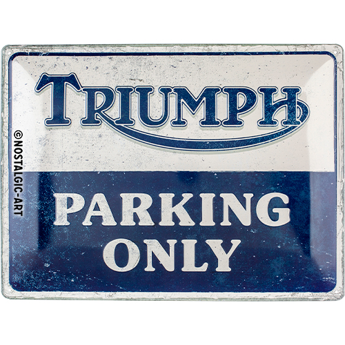 Nostalgic-Art Blechschild 30 x 40 cm Triumph – Parking Only Details: Aus extra starkem Stahlblech Qualität Made in Germany Motivgeprägt Einzeln in Folienbeutel verpackt Format 30 x 40 cm