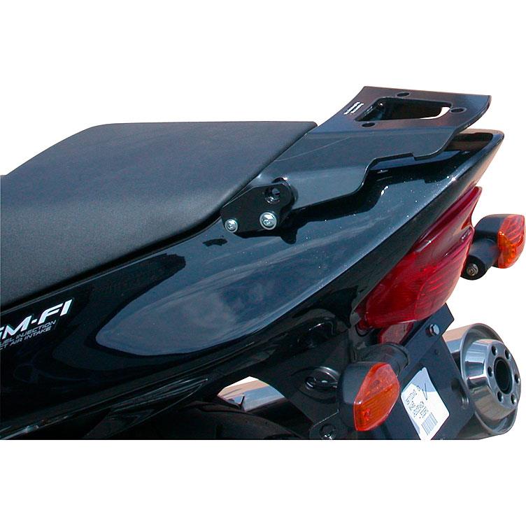 Der etwas andere Topcaseträger: sehr leichte Gepäckbrücke aus pulverbeschichteten Aluminium. Durch die zusätzlich notwendigen, in sekundenschnelle mittels Schnellverschlüssen abnehmbaren, Quick-Lock Adapterplatten (70000011000 und folgend) für verschiedene Topcasemarken oder Universaltopcaseadapterplatten passend. Natürlich auch für Gepäckrollen geeignet – eine noch stabilere Befestigung wird hier mit der abnehmbaren Verbreiterungsplatte (70000011050) erreicht. Die Montage erfolgt an Originalhaltepunkten.