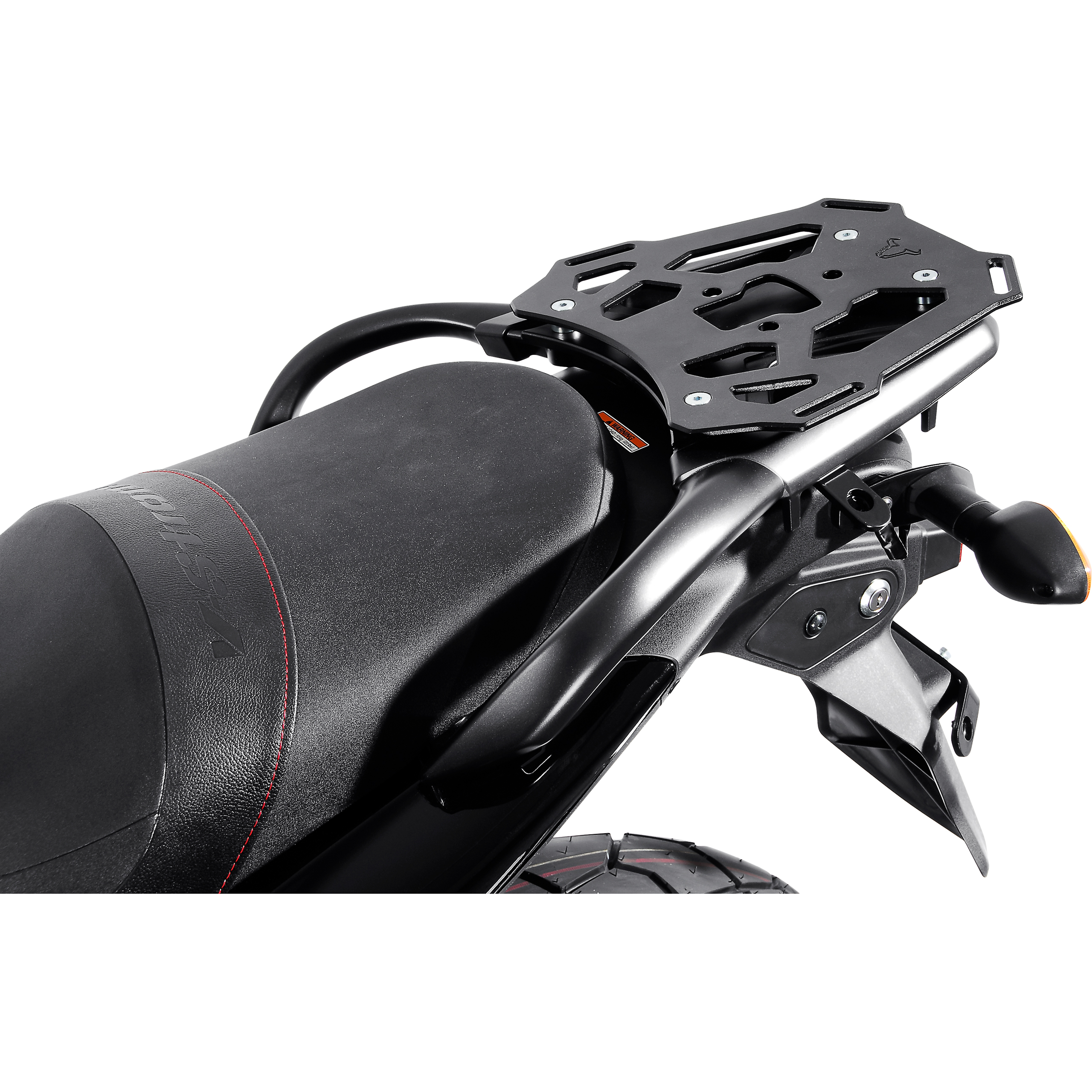 Der etwas andere Topcaseträger: sehr leichte Gepäckbrücke aus pulverbeschichteten Aluminium. Durch die zusätzlich notwendigen, in sekundenschnelle mittels Schnellverschlüssen abnehmbaren, Quick-Lock Adapterplatten (70000011000 und folgend) für verschiedene Topcasemarken oder Universaltopcaseadapterplatten passend. Natürlich auch für Gepäckrollen geeignet – eine noch stabilere Befestigung wird hier mit der abnehmbaren Verbreiterungsplatte (70000011050) erreicht. Die Montage erfolgt an Originalhaltepunkten. Mit der Gummiabdeckung (70000011130) läßt sich die T-förmige Aussparung bei Nichtgebrauch abdecken.