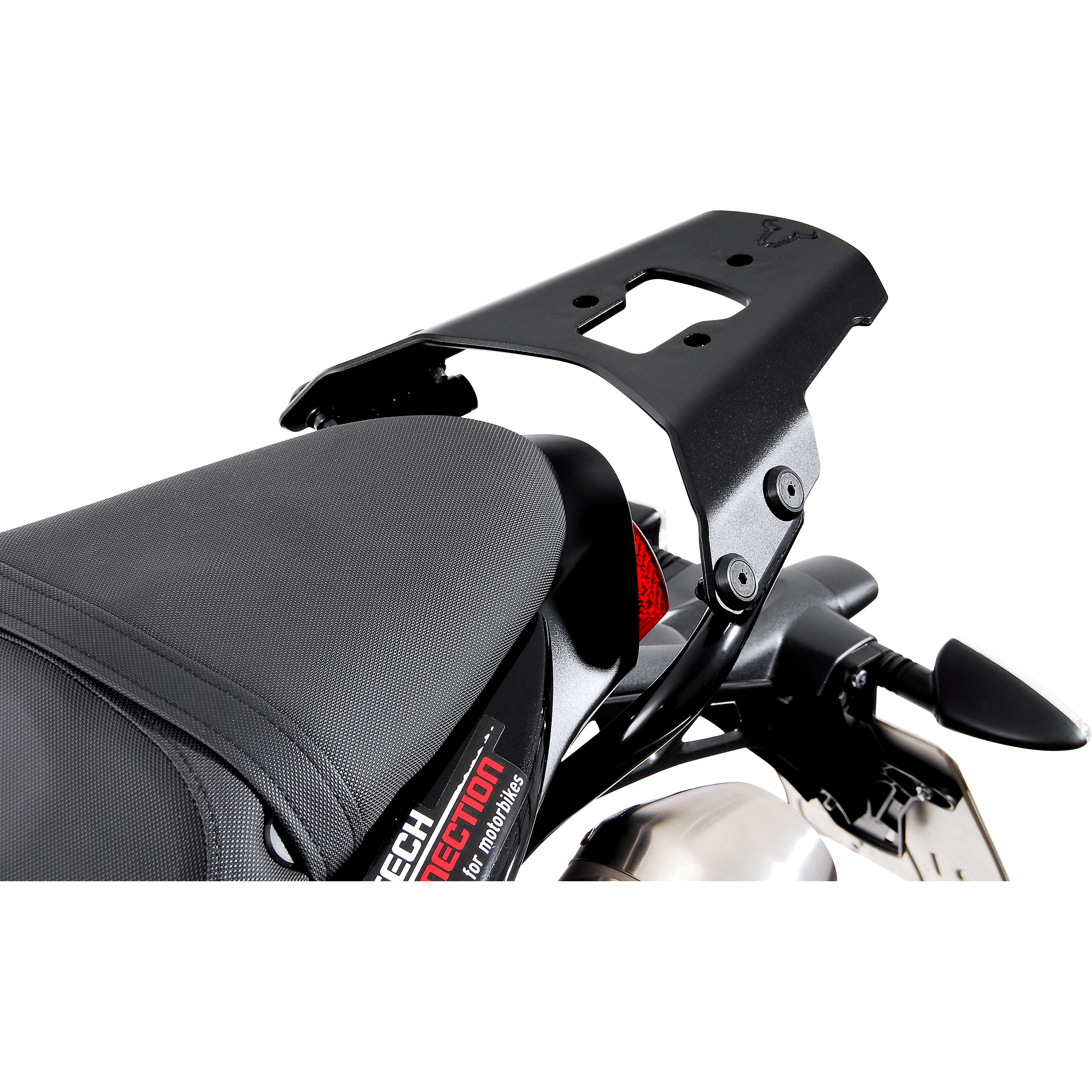 Der etwas andere Topcaseträger: sehr leichte Gepäckbrücke aus pulverbeschichteten Aluminium. Durch die zusätzlich notwendigen, in sekundenschnelle mittels Schnellverschlüssen abnehmbaren, Quick-Lock Adapterplatten (70000011000 und folgend) für verschiedene Topcasemarken oder Universaltopcaseadapterplatten passend. Natürlich auch für Gepäckrollen geeignet – eine noch stabilere Befestigung wird hier mit der abnehmbaren Verbreiterungsplatte (70000011050) erreicht. Zum Erscheinungsbild des Motorrades passend designt.Die Montage erfolgt an Originalhaltepunkten. Mit der Gummiabdeckung (70000011130) läßt sich die T-förmige Aussparung bei Nichtgebrauch abdecken.
