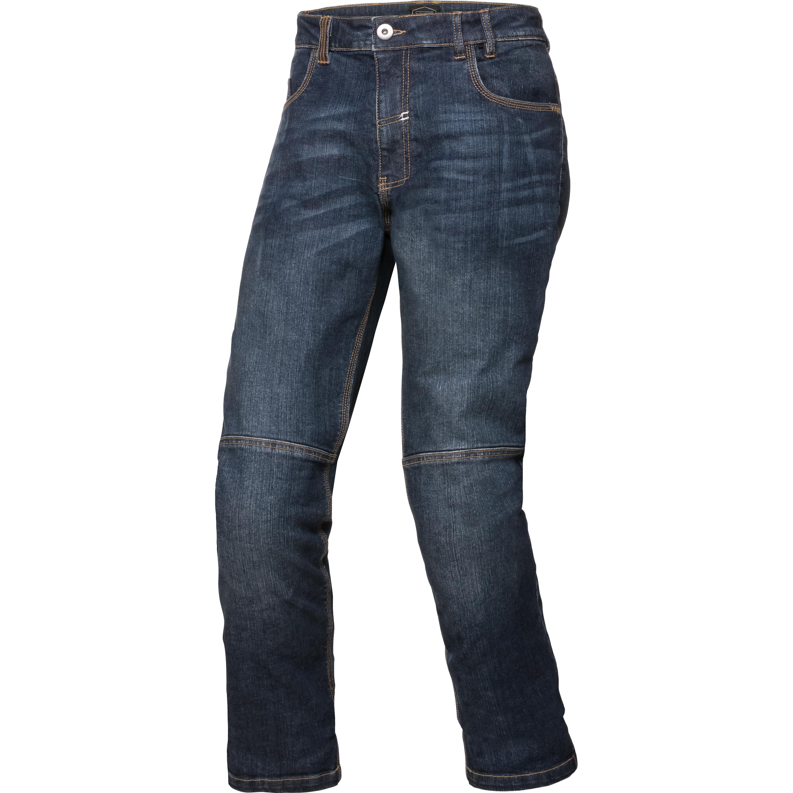 Spirit Motors Aramid-/Baumwolljeans mit Stretch 1.0 Komfort & Ausstattung: Aramid Verstärkung an Hüfte, Gesäß und Knie Slim-Fit Used-Washed-Look Dekorative Kontrastnähte 2 Einschubtaschen 1 Kleingeldtasche und 2 Gesäßtaschen Protektoren: Knie: 320948, Typ B, Leistungsstufe 2,Bauart geprüft nach EN 1621-1, individuell positionierbar durch Klett-System Taschen für Hüftprotektoren vorhanden (optional nachrüstbar) Material: Außen: Denim (98 % Baumwolle, 2 % Elasthan); Futter und Protektorentaschen: je 65 % Polyester, 35 % Baumwolle; Verstärkungen: 73 % Polyester, 27 % Aramid