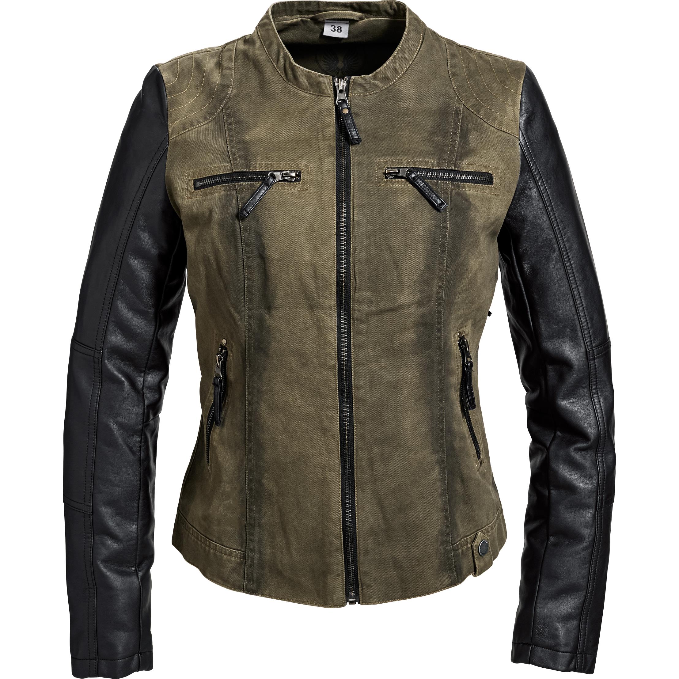 Spirit Motors Freizeit Damen Urban Jacke 1.0 Komfort & Ausstattung: Damenfreizeitjacke im Vintage Look Baumwollbody mit Kunstleder Ärmeln 2 Brusttaschen, 2 seitliche Einschubtaschen, 1 Innentasche Material: Außenmaterial: 65% Baumwolle, 17% PU, 15% Polyester, 3% Viskose Innenfutter: 100% Polyester