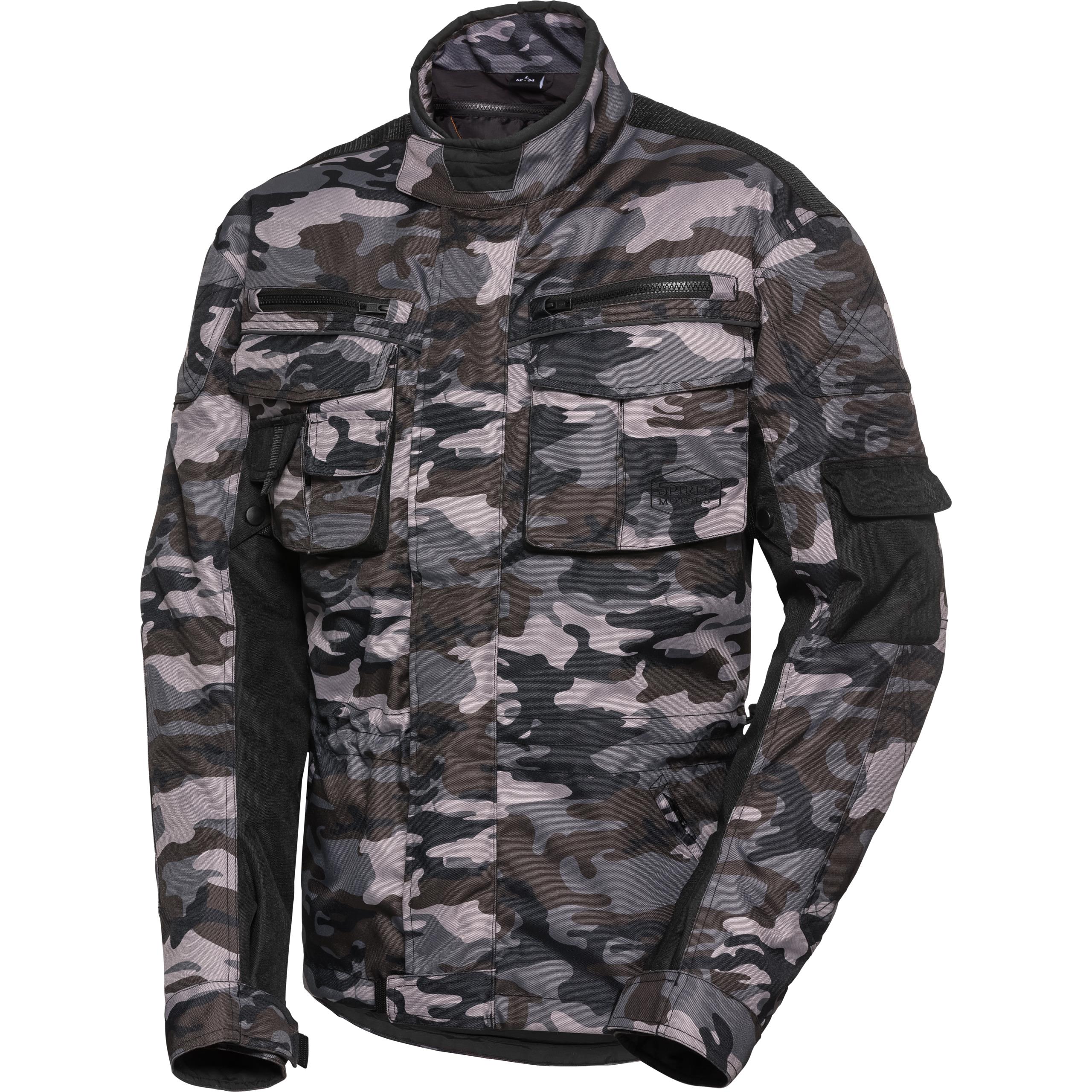 Spirit Motors Funktions-Textiljacke lang 1.0 Lange Textiljacke im angesagten Camouflage Look. Komfort & Ausstattung: wasserdicht, winddicht und atmungsaktiv durch Klimamembran herausnehmbares Thermofutter atmungsaktives Netzfutter MVS-1 Membran-Ventilations-System gegen Hitzestau an Front und Rücken Weitenverstellung an Kragen und Ärmeln 2 Außentaschen, 3 Innentaschen Reflexmaterial im Rückenbereich kurzer Verbindungsreißverschluss zu Hosen Protektoren: Schulter- und Ellbogenprotektoren, Bauart geprüft nach EN 1621-1 Tasche für optional nachrüstbaren Rückenprotektor Material: Außenmaterial abriebfestes 600D Gewebe Außenmaterial und Futter jeweils 100% Polyester Unser Tipp dazu: Spirit Motors Textilhose 1.0 (Artikel-Nr. 21032607)