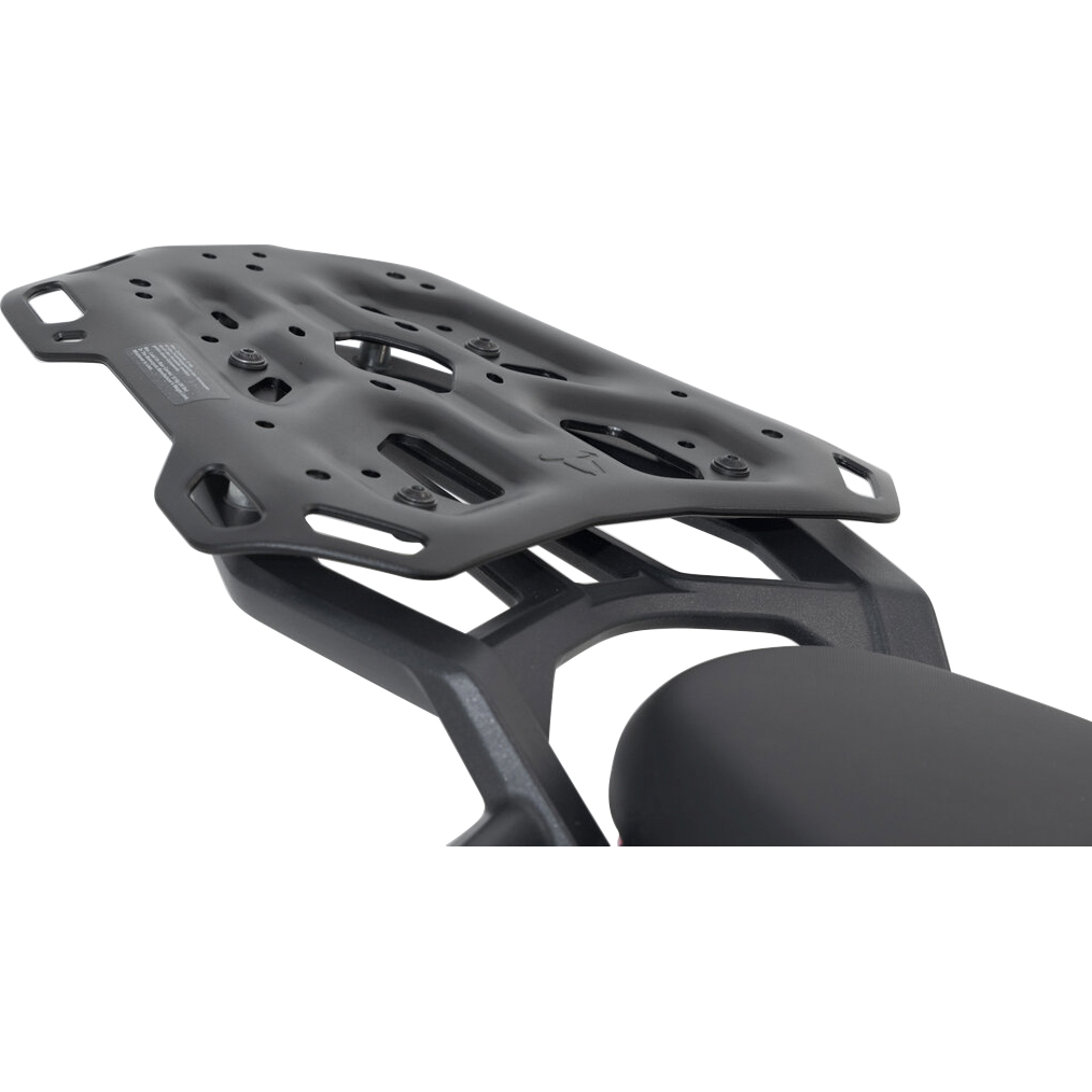SW-Motech QUICK-LOCK Adventure-Rack Besonders robuster Gepäckträger für lange Touren auch auf unbefestigten Wegen.Materialstärke, Gewicht und Geometrie wurden bei der Weiterentwicklung des ALU-RACK für anspruchsvolle Touren sowie für den Offroad-Einsatz optimiert. Details: großzügige Auflagefläche zahlreiche, große Verzurrösen geben Hecktaschen sicheren Halt – durchfädeln von 25 mm-Verschlüssen ist möglich Funktionsbohrungen nehmen, dann zusätzlich notwendige, QUICK-LOCK Adapterkits zur Befestigung von Topcases auf (siehe unten) modellspezifischen Anbauelemente garantieren beste Passform und eine einfache Montage an Originalanbaupunkten extreme Belastbarkeit bei Vibration, Stößen und hohem Gewicht aus leichter und dennoch robuster, 4 mm starker Aluminium-Legierung, pulverbeschichtet Maße Platte ohne modellspezifischen Anbausatz (ca.):Länge x Breite x Höhe gesamt: 30 x 33 x 2 cmGewicht: 710 g Optionen: QUICK-LOCK Adventure-Rack Adapterkits für die sekundenschnelle Befestigung von Topcase der verschiedenen Hersteller (Bestellnummer 70000070000 und folgend) Gepäckbrückenverbreiterung für mehr Auflagefläche bei größeren Hecktaschen (Bestellnummer 70000070080) Zulassung:Koffer- und Gepäckträger müssen nicht zugelassen werden, benötigen deshalb auch keine Prüfzeichen, Gutachten oder ABE´s. Preis pro Stück